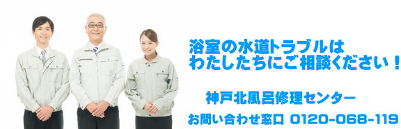 神戸北風呂修理センターは神戸市北区の浴室修理専門業者です。シャワーの水漏れ、水圧が弱い、排水溝の流れが悪い、水栓の交換がしたいなどお気軽にお問い合わせください。